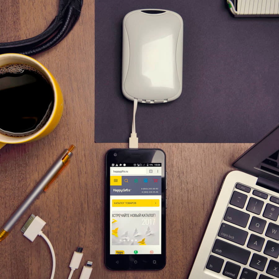 Аккумулятор Li-ion, 4000 mAh Входные параметры: 5 В, 1000 mA. Выходные параметры: 5 В, 1000 mA Индикация зарядки В комплект входит: зарядное устройство с кабелем с разъемами USB и micro USB и для зарядки iPhone 4 4S, 5 5S 5C,6