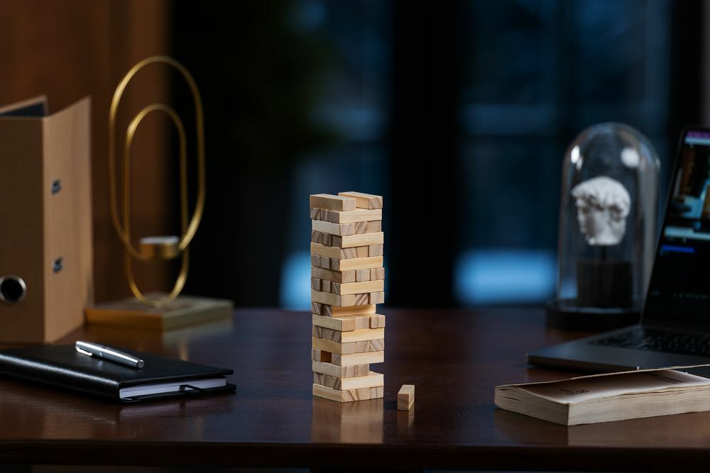 Второе название игры — «Падающая башня». Сначала строится башня: по три брусочка в ряд, каждый слой перпендикулярен предыдущему. Затем игроки по очереди вытаскивают по одному брусочку и кладут его на верх сооружения. Тот игрок, кто обрушит башню, проиграл. Игра тренирует ловкость, внимание, терпение и пространственное мышление, что очень важно и в бизнесе. Так что подарок не только развлечет, но и может стать символом-пожеланием.