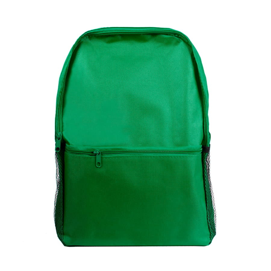 Цвет, близкий к Pantone Green 347 С Легкий промо-рюкзак из прочного полиэстера 600D с одним основным отсеком и внешним карманом на молнии. Два боковых кармана из сеточки на резинке добавят места для бутылочки с водой или хранения мелких предметов. Регулируемые мягкие лямки помогут сделать рюкзак с вещами почти невесомым.