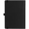 Ежедневник с твердой обложкой без поролона, выполнен из материала Soft Touch, черный АА, дополнен резинкой шириной 1 см, петлей-резинкой для ручки, капталом и ляссе черного цвета.