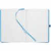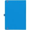 Ежедневник с твердой обложкой без поролона, выполнен из материала Soft Touch Ultra, голубой JJ, дополнен резинкой шириной 1 см, петлей-резинкой для ручки, капталом и ляссе голубого цвета.
