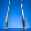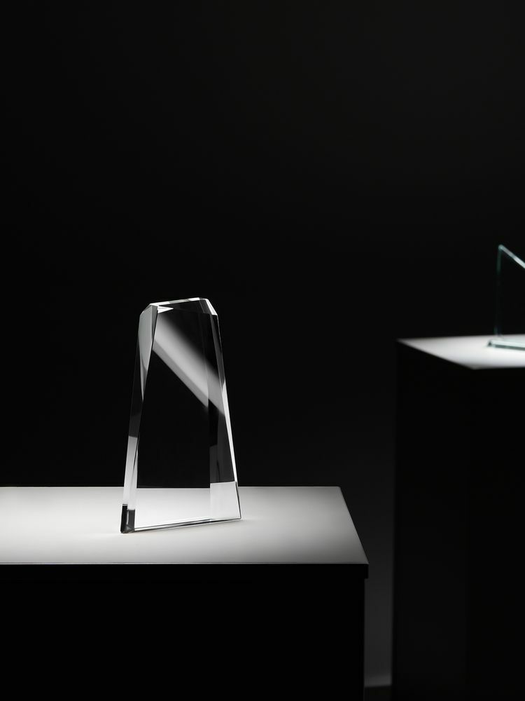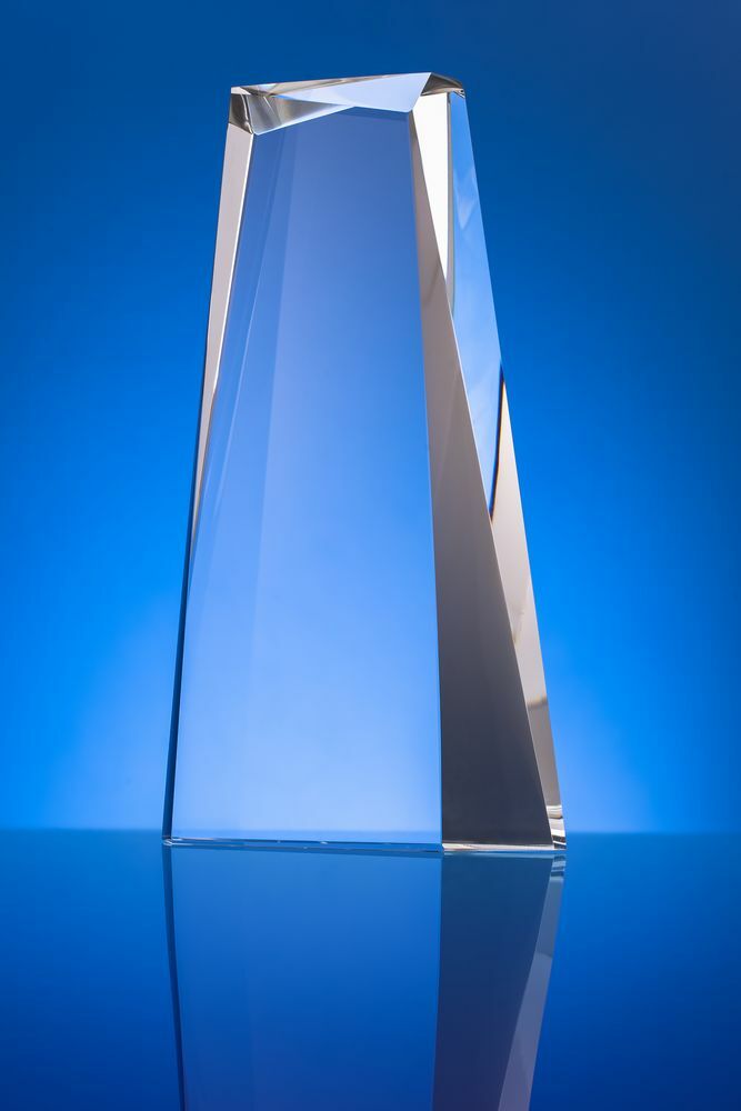 Стела изготовлена из стекла К9, в основе которого лежит оптическое боросиликатное стекло. Эту марку стекла отличает низкий процент посторонних включений, высокий показатель преломления и высокая прозрачность — идеальные качества для изготовления наград премиального уровня.