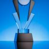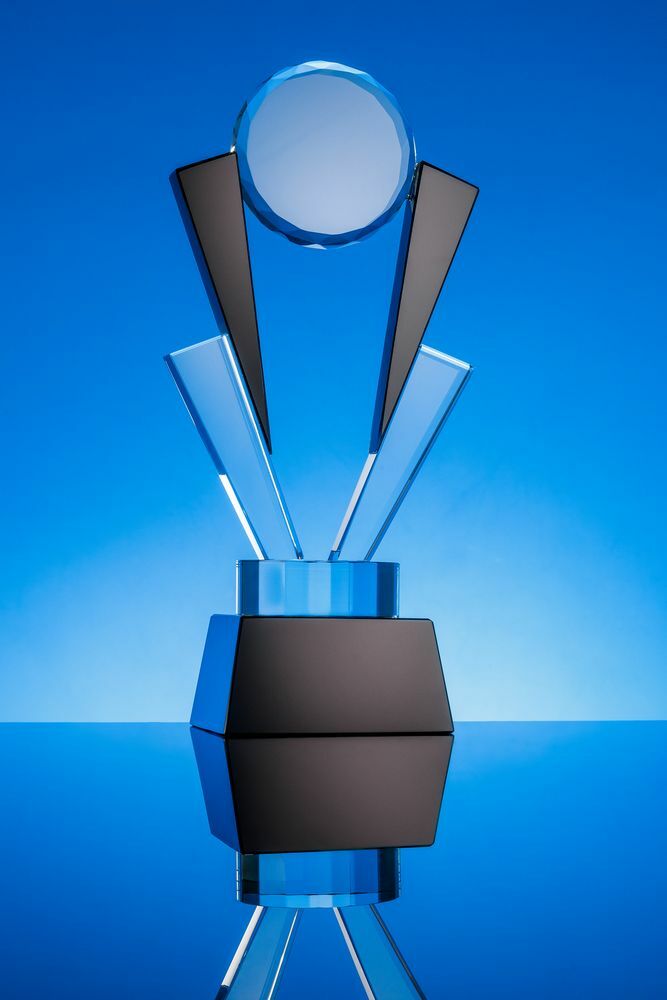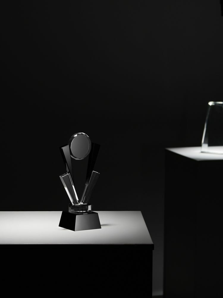 Стела изготовлена из стекла К9, в основе которого лежит оптическое боросиликатное стекло. Эту марку стекла отличает низкий процент посторонних включений, высокий показатель преломления и высокая прозрачность — идеальные качества для изготовления наград премиального уровня.