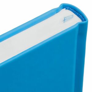 Ежедневник с твердой обложкой без поролона, выполнен из материала Soft Touch Ultra, голубой JJ, дополнен резинкой шириной 1 см, петлей-резинкой для ручки, капталом и ляссе голубого цвета.