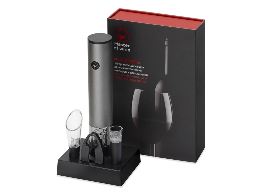 Набор винных аксессуаров с электрическим штопором на док-станции