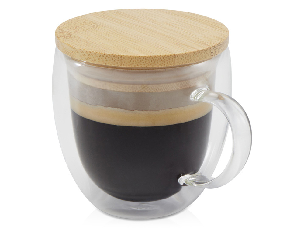 Стеклянная кружка Lenora емкостью 250 мл с бамбуковой крышкой - прозрачный