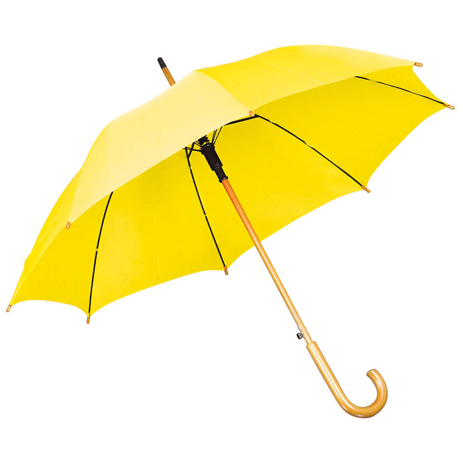 Зонт-трость с деревянной ручкой, полуавтомат; белый; D=103 см, L=90см; нейлон; шелкография