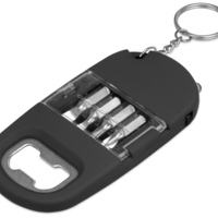 Брелок-открывалка с отвертками и фонариком "Uni", софт-тач, черный (Р)
