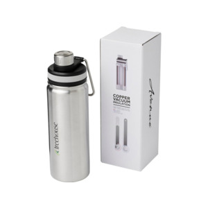 Спортивная бутылка Gessi объемом 590 мл с медной вакуумной изоляцией. двустенная вакуумная конструкция из нержавеющей стали с медной изоляцией позволяет напиткам оставаться горячими в течение 12 часов, а холодными — 48 часов. Конструкция также препятствует образованию конденсата на внешней стороне бутылки. Закручивающаяся крышка из нержавеющей стали с ручкой для переноски. Конструкция с двумя отверстиями для легкой очистки и наполнения. Объем — 590 мл. Представлена в подарочной коробке Avenue. Нержавеющая сталь.