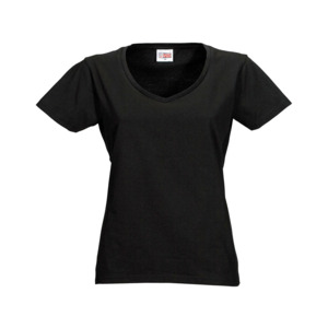 Женская футболка из натурального хлопка с элегантным V-образным вырезом. Материал отлично подходит для нанесения рекламной информации. Натуральная ткань не вызывает раздражения кожи.