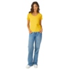 Женская футболка из натурального хлопка с элегантным V-образным вырезом. Материал отлично подходит для нанесения рекламной информации. Натуральная ткань не вызывает раздражения кожи.