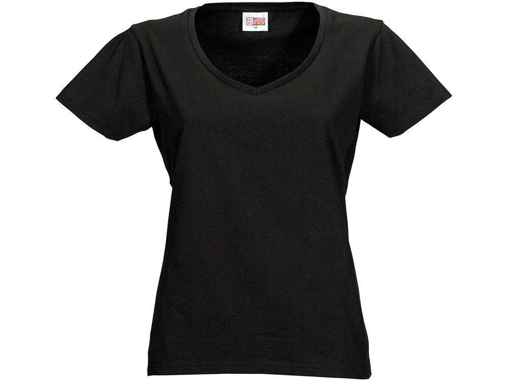 Женская футболка из натурального хлопка с элегантным V-образным вырезом. Материал отлично подходит для нанесения рекламной информации. Натуральная ткань не вызывает раздражения кожи.
