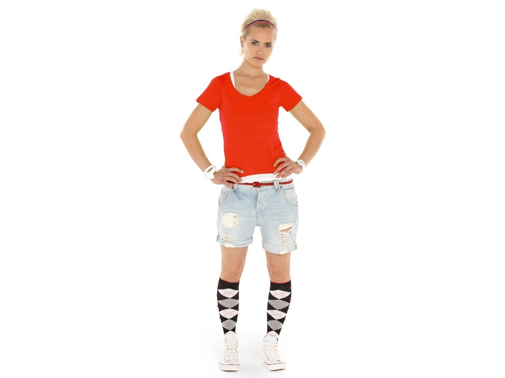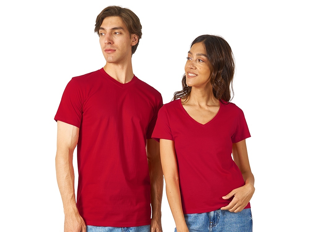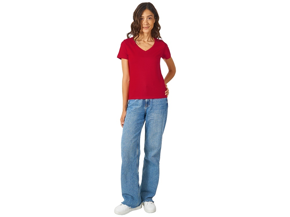 Женская футболка из натурального хлопка с элегантным V-образным вырезом. Материал отлично подходит для нанесения рекламной информации. Натуральная ткань не вызывает раздражения кожи.