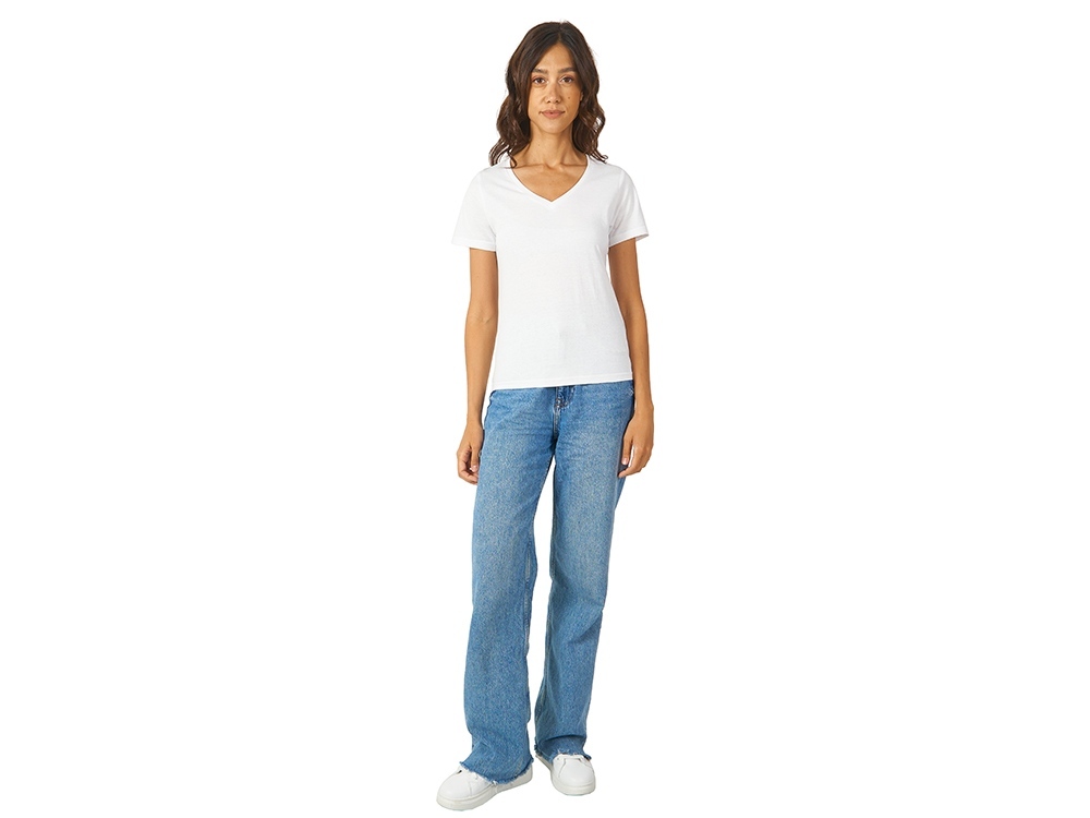 Женская футболка из натурального хлопка с элегантным V-образным вырезом. Материал отлично подходит для нанесения рекламной информации. Натуральная ткань не вызывает раздражения кожи.