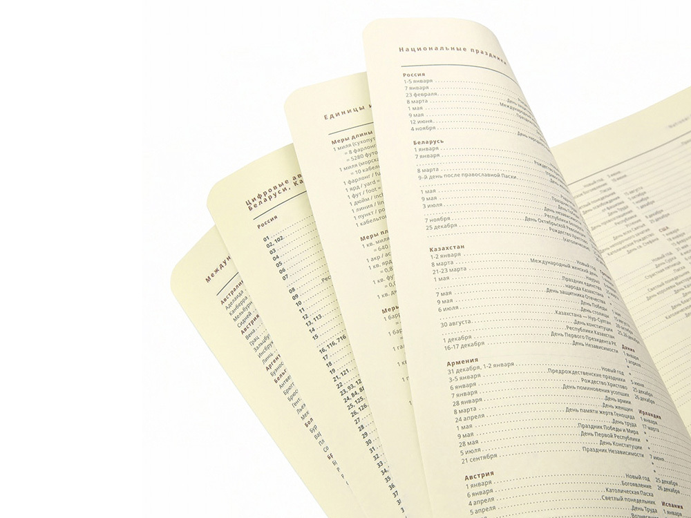 Недатированный ежедневник «Prestige» от бренда Bruno Visconti - это качественный корпоративный подарок по выгодной цене, произведенный специально под персонализацию. Представлен в универсальном формате А5 и содержит 320 страниц. Не лишенный солидности и респектабельности новый ежедневник Prestige от Bruno Visconti идеально дополняет имидж современных профессионалов. Твердая обложка выполнена из гладкого кожзама, неотличимого от кожи “fiore vegetale”. Скругленный корешок и уголки обложки в сочетании с магнитным клапаном делают ежедневник Prestige невероятно стильным аксессуаром. Глянцевая поверхность материала акцентирована контрастной белой строчкой вдоль закругленного края. Функциональная деталь - широкий магнитный клапан. Декоративный хлястик надежно фиксирует блок, исключая случайное раскрывание в сумке. В ежедневнике «Prestige» есть полезная справочная информация на русском языке, а также страницы для записи идей, мыслей и составления рабочих планов. Дни недели указаны сокращенно на английском языке. Для изготовления страниц используется качественный бежевый офсет повышенной плотности (70 г/кв м), который производится в Японии и подходит для всех видов чернил. Разметка блока с указанием времени позволяет планировать дела с точностью до 1 часа. Ежедневники от бренда Bruno Visconti можно персонализировать с помощью всех видов тиснения обложки. Наши ежедневники помогут быть успешным и эффективным в карьере и повседневной жизни!