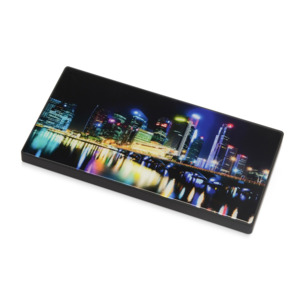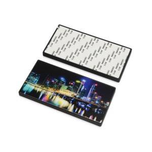 Повербанк емкостью 5000 mAh в строгом геометричном дизайне. Корпус сделан из качественного АБС-пластика с покрытием soft-touch. Ключевая деталь дизайна портативного аккумулятора — прочное закаленное стекло, которое можно декорировать. Оно обладает большим рекламным потенциалом: подходит для печати полноцветного контрастного изображения логотипа или других рекламных материалов. Закаленное стекло поставляется вместе с повербанком и легко крепится на корпус после запечатки. Основные характеристики пауэрбанка: - Литий-ионная полимерная батарея 5000 mAh. - 2 зарядных USB-порта. - Soft-touch покрытие.