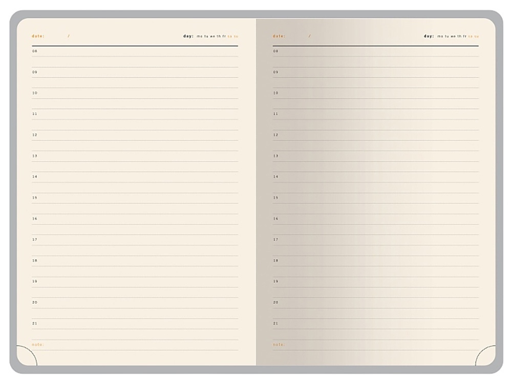 Недатированный ежедневник «PARLIAMENT» формата A5 в твердом переплете – элегантный деловой аксессуар, подчеркивающий статус владельца с продуманным до мелочей функционалом: - твердая обложка из высококачественной экокожи с декоративной нитью по периметру в тон ежедневника; - серебряный срез, контрастирующий с цветом обложки; - скругленные перфорированные углы блока и двойное ляссе для удобства навигации; - внутренний блок с увеличенным количеством страниц - 352, содержит несколько разделов: - страница для персональных данных; - раздел справочной информации на 17 страницах (часовые пояса, аэропорты Европы, международные телефонные коды, размер одежды, телефонные коды России, Беларуси, Казахстана, Армении, цифровые автомобильные коды, римские цифры, расход калорий при физической нагрузке, формат бумаги, десятичные приставки, единицы измерения, греческие буквы, штрихкоды, время распада алкоголя в крови, города-миллионники, национальные праздники, термины международной торговли, температура, скорость, давление, буквенные коды стран, энергетическая и питательная ценность продуктов, страны мира, заметки); - раздел для планирования с разлинованными листами и указанием времени с интервалом в один час; - картонный слив-бокс.