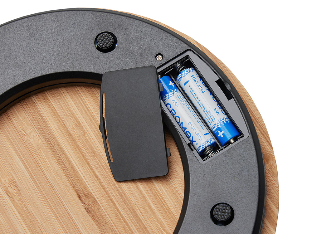 Кухонные весы – незаменимый аксессуар, который пригодится тем, кому часто приходится соблюдать точные пропорции. Платформа изготовлена из натурального бамбука. Этот материал отлично отталкивает влагу и предотвращает распространение бактерий. Лаконичный внешний вид позволяет весам вписываться в любой интерьер. • Датчики высокой точности гарантируют корректность взвешивания; • минимальная нагрузка – 1 г, а максимальная – 5 кг; • точность измерения – 1 г; • функция сброса веса тары позволяет один за другим взвешивать ингредиенты без учета массы посуды; • автоматическое отключение; • присутствуют индикаторы низкого заряда батареи и перегрузки; • можно свободно переключаться между граммами, фунтами, унциями, миллилитрами и жидкими унциями; • работа от двух батареек 1.5V AAA. На кухонные весы "Scale" можно нанести логотип компании, и тогда они будут не только радовать владельца своей функциональностью, но и повышать узнаваемость фирмы.