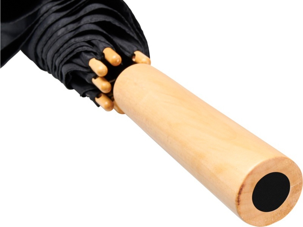Полуавтоматический зонт с куполом из эпонж полиэстера и переработанного ПЭТ-пластика. Прочный металлический стержень, высококачественная рама со спицами из стекловолокна, обеспечивающая гибкость в ветреную погоду. Сочетание деревянной ручки, кончиков спиц и купола из эпонж полиэстера и переработанного ПЭТ-пластика обеспечивает надежность зонта.