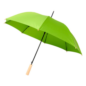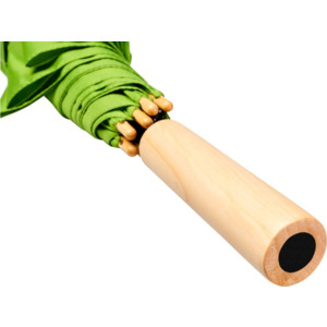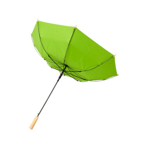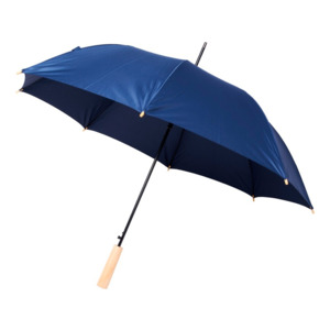 Полуавтоматический зонт с куполом из эпонж полиэстера и переработанного ПЭТ-пластика. Прочный металлический стержень, высококачественная рама со спицами из стекловолокна, обеспечивающая гибкость в ветреную погоду. Сочетание деревянной ручки, кончиков спиц и купола из эпонж полиэстера и переработанного ПЭТ-пластика обеспечивает надежность зонта.