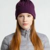 Однослойная шапка фактурной вязки с отворотом.