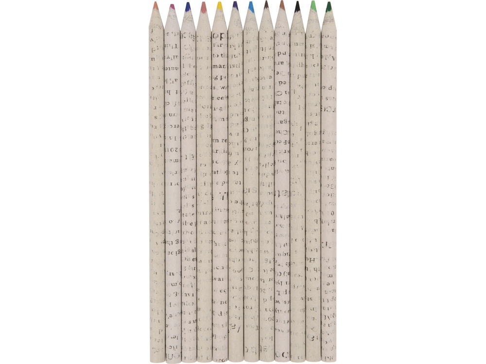 Набор цветных карандашей, выполненных в оригинальном корпусе из имитации газетной бумаги. Благодаря пеналу в форме тубуса удобно хранить или брать с собой. Набор состоит из карандашей 12 цветов.