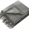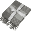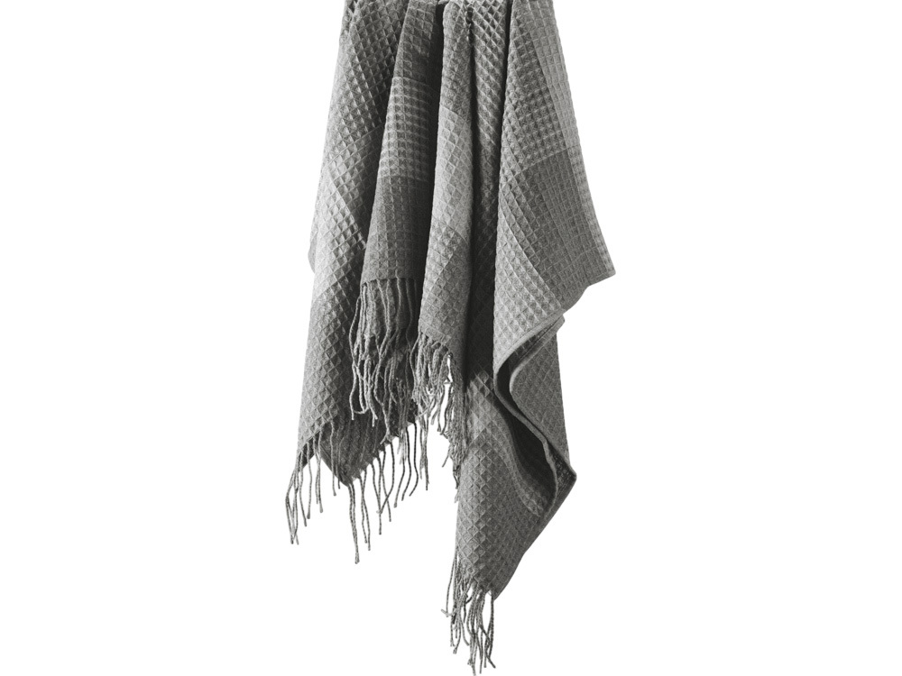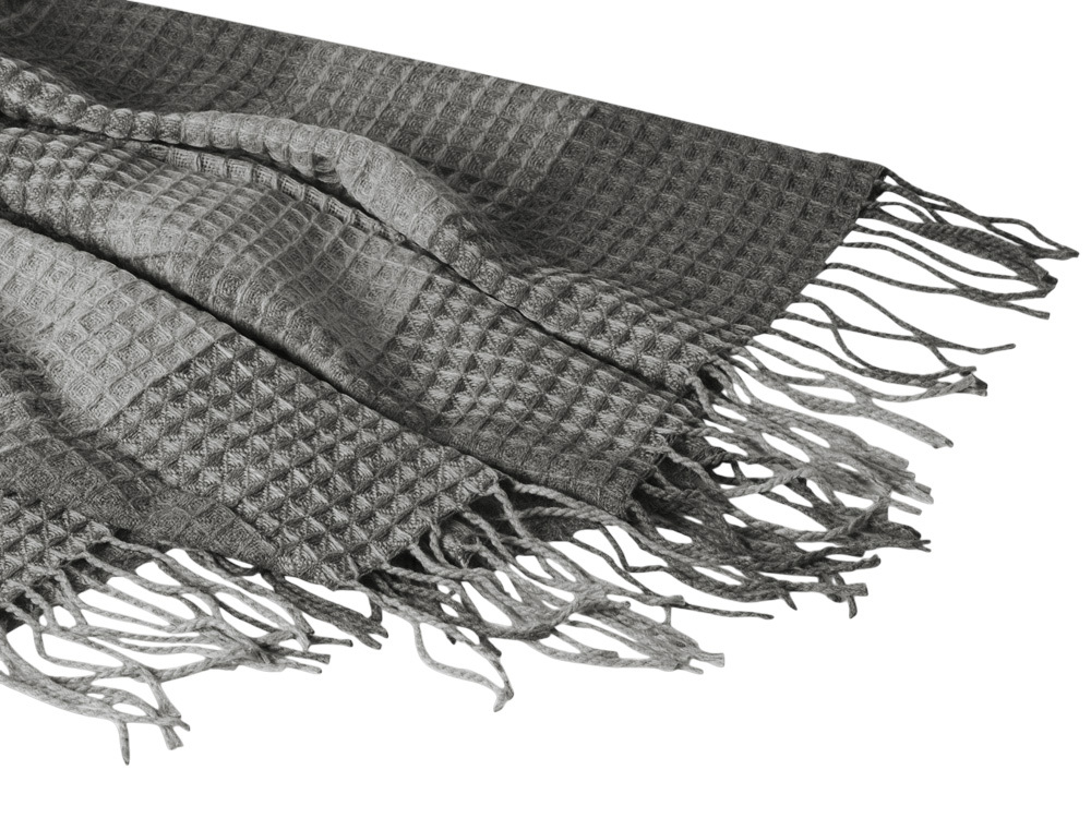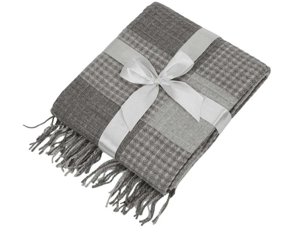 Теплый плотный плед из акрила, украшенный бахромой, имеет приятную на ощупь текстуру поверхности и создает атмосферу комфорта и уюта.