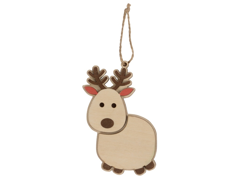 Елочная игрушка в виде праздничного символа - "новогоднего" оленя. Изготовлен из нескольких слоев березовой фанеры и украшен тонировкой.