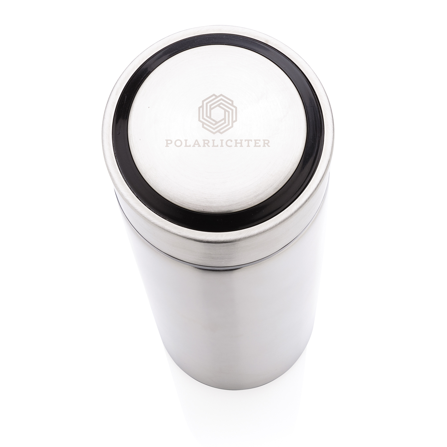 Сохраните первозданный вкус кофе или чая с этой вакуумной бутылкой из нержавеющей стали. Герметичная крышка и широкое горлышко для вашего удобства. Объем 425 мл. Не содержит BPA.
