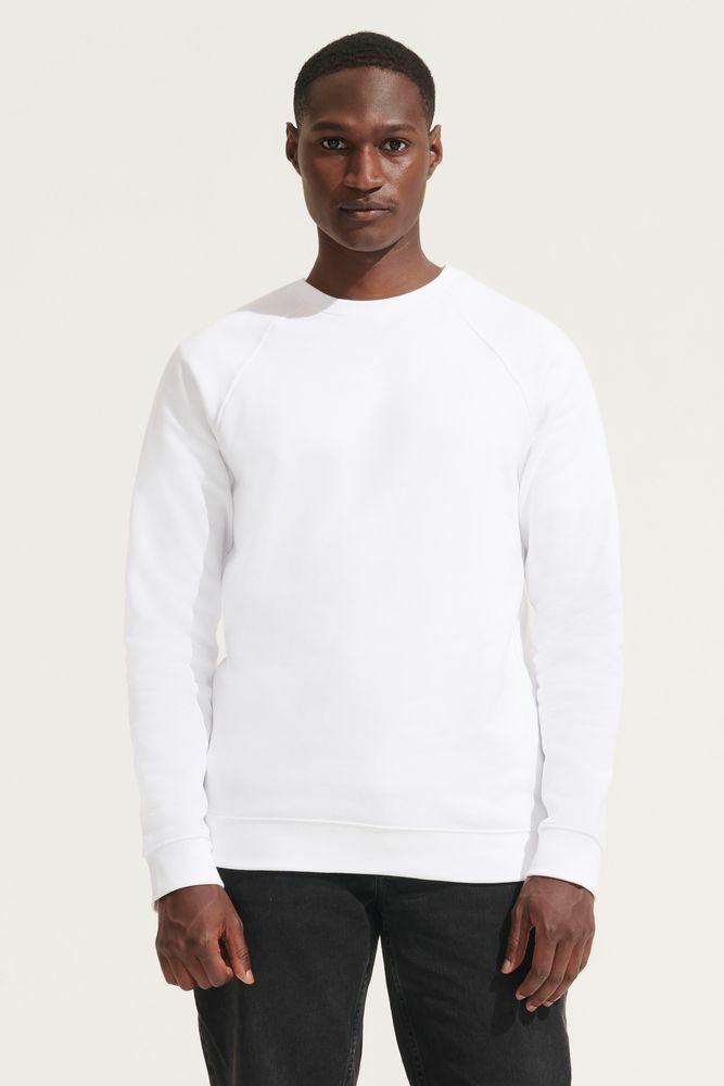 Свитшот унисекс из органического хлопка. Лейбл производителя в боковом шве изнутри, в шве горловины — только бирка с размером, что позволяет удобно нанести свой логотип.