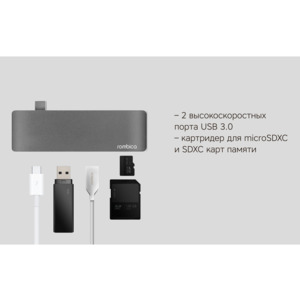 • Для ноутбуков с интерфейсом USB Type-C • Поддержка функции PD – зарядка ноутбука при подключенном адаптере* • 2 высокоскоростных порта USB 3.0 • Картридер для microSDXC и SDXC карт памяти • Не требует ручной установки драйверов • Не требует дополнительного питания • Алюминиевый корпус * для зарядки ноутбука через порт адаптера Type-C Power Delivery требуется использовать штатное зарядное устройство для ноутбука (в комплект адаптера не входит). Ноутбук должен поддерживать зарядку через порт USB Type-C Female, к которому будет подключен адаптер.