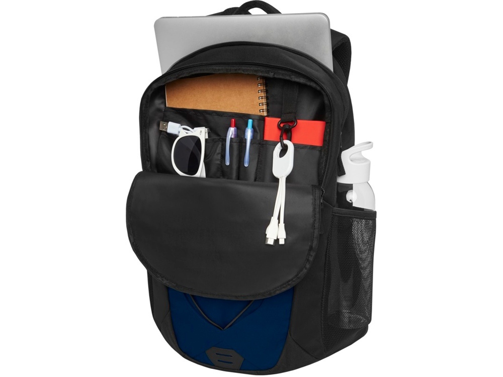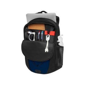 Комбинация походного и ежедневного рюкзака с цветной отделкой и эластичным шнурком со светоотражающими элементами на передней панели. Имеет два внешних сетчатых кармана для хранения бутылок с водой, переднее отделение с несколькими небольшими отделами, крючок для удобного хранения и чехол для планшета размером 12". Рюкзак оснащен укрепленной ручкой и удобной спинкой со смягчающими прокладками. Мягкий чехол внутри главного отделения подходит для ноутбука размером 15,6".