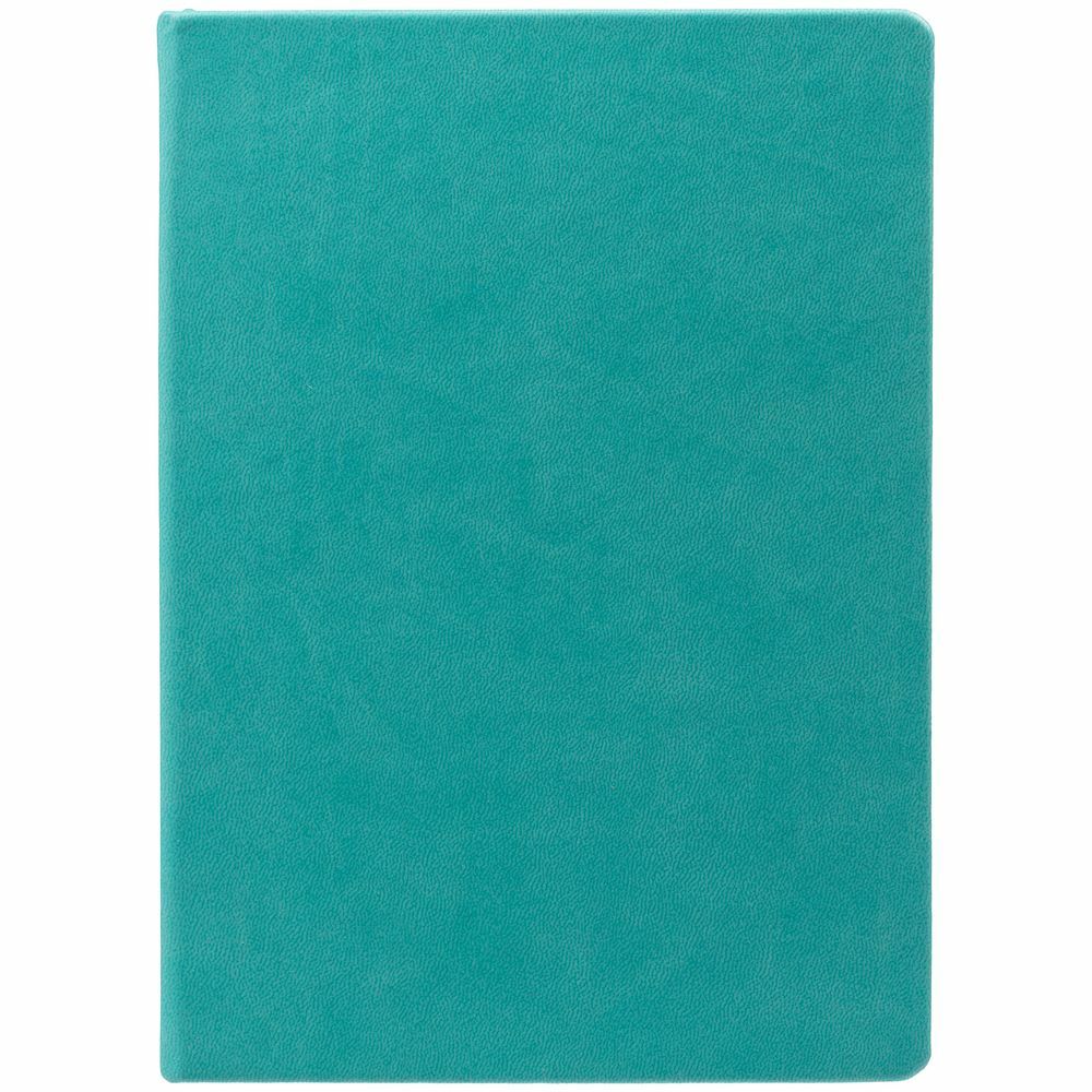 Ежедневник с твердой обложкой и тонированным обрезом. Выполнен из материала Latte, бирюзовый, дополнен ляссе в цвет обложки.