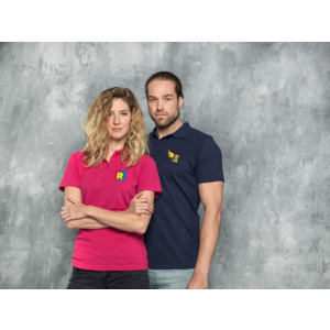 Мужское поло Helios с коротким рукавом. Отрезной-отрывной ярлык для комфорта. Воротник гладкой вязкой в рубчик. Планка с двумя пуговицами. Двойная строчка на воротнике и внизу изделия. Пуговицы в цвет изделия. Полоска на горловине в контрастном цвете. Трикотаж Piqué, 100 % хлопок. 180 г/м².
