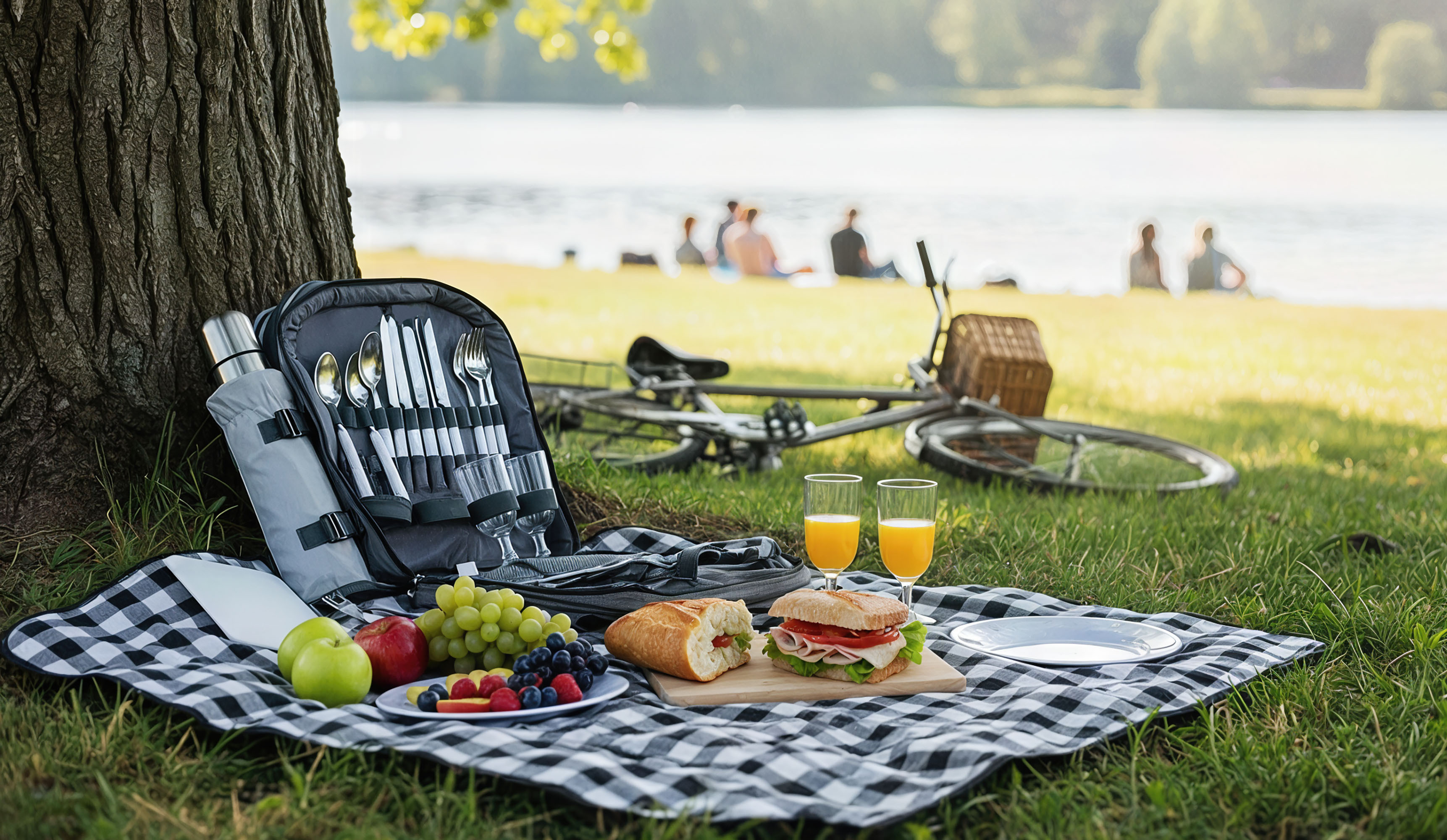 Рюкзак для пикника "Дания" с комплектом приборов на 4 персоны. Большое холодильное отделение и съемный кулер для термоса (бутылки вина).