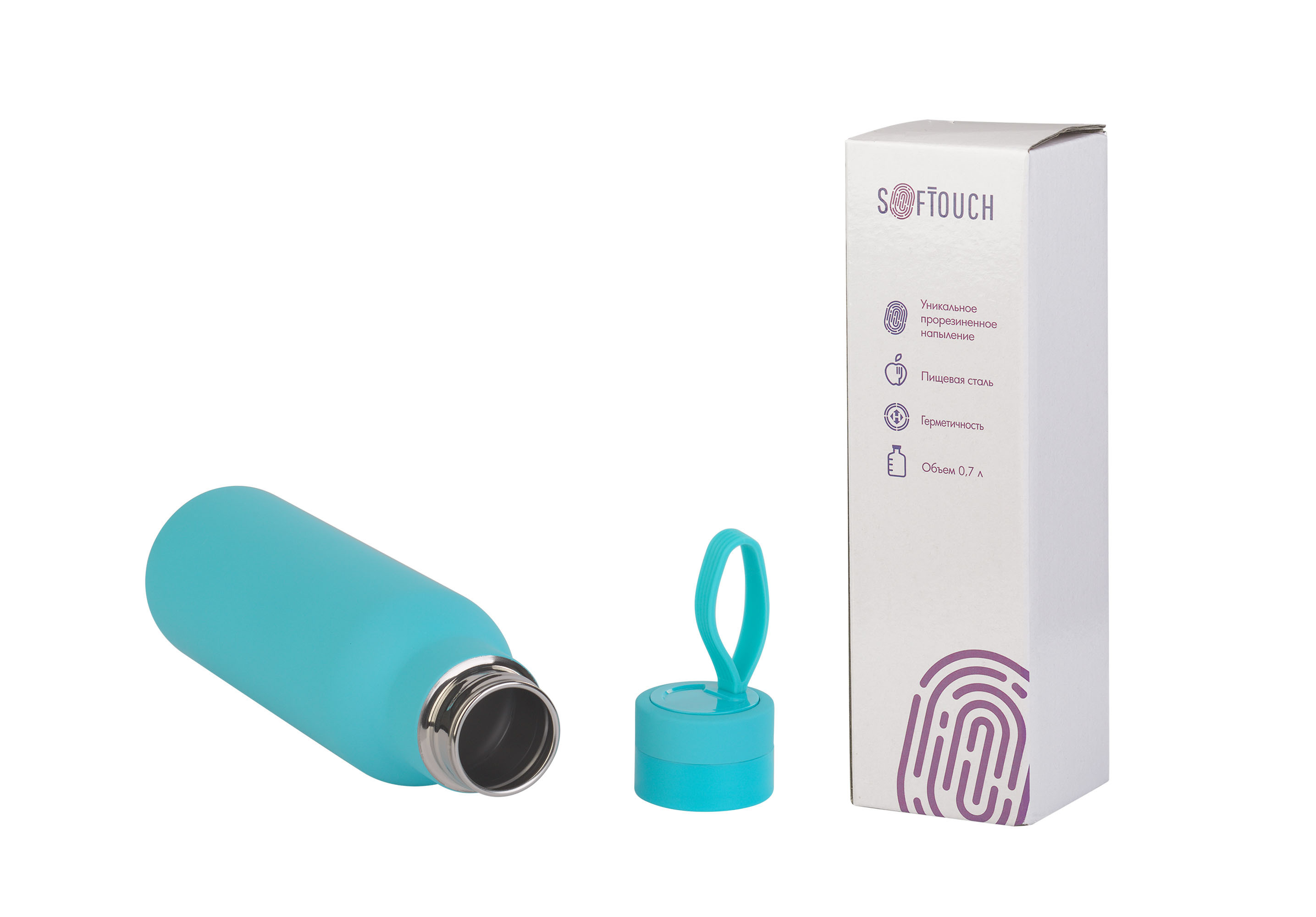 Бутылка для воды "Фитнес", покрытие soft touch, 0,7 л. бирюзовый в ассортименте цветов, материалов и моделей