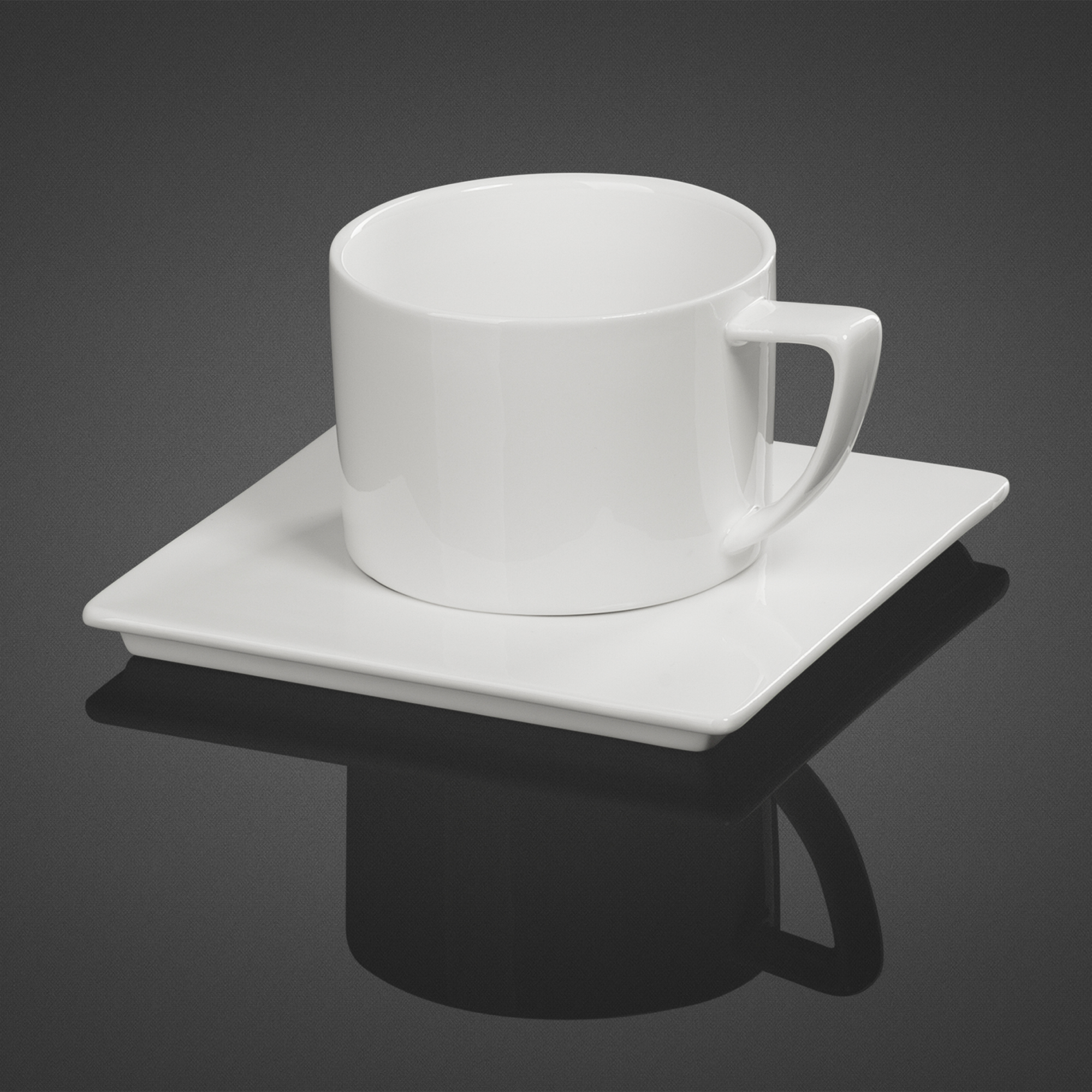 Изделия выполнены из белого фарфора, стильную чашку объемом 280 мл эффектно дополняет оригинальная форма блюдца.
