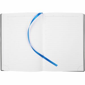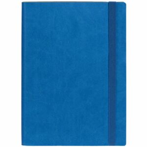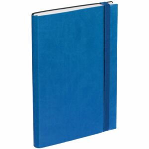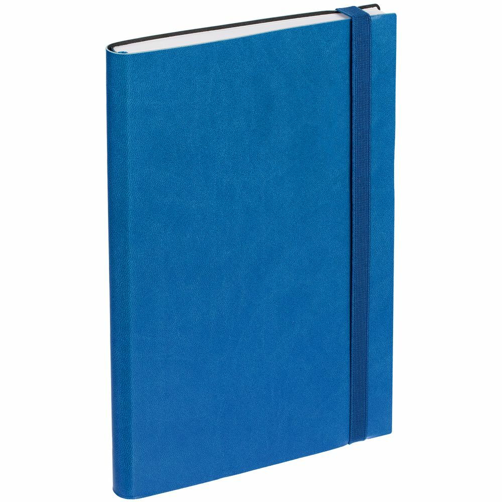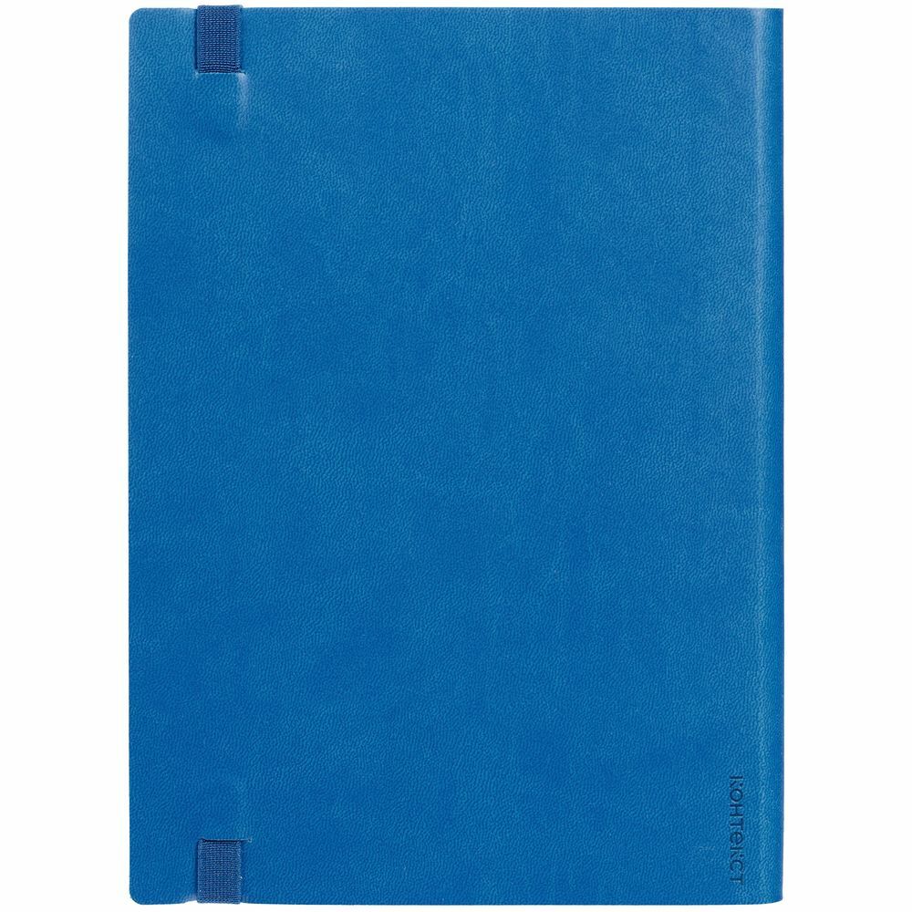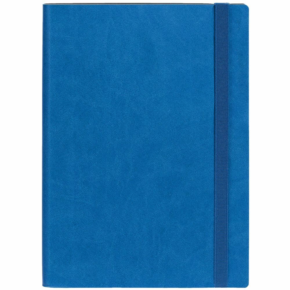Ежедневник с гибкой обложкой, выполнен из материала Latte, синий НН, дополнен резинкой шириной 1 см, капталом и ляссе синего цвета.