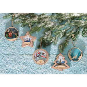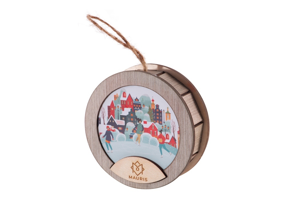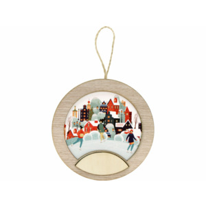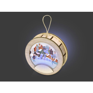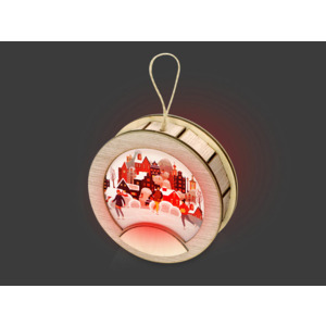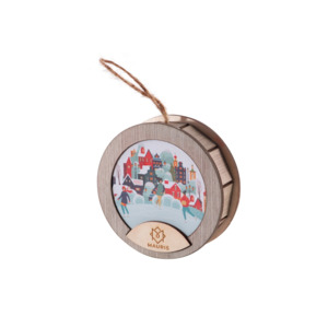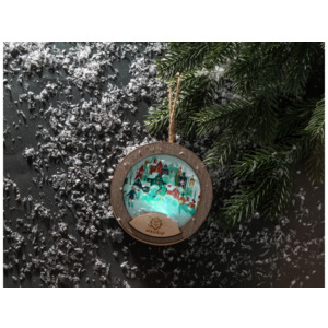 Новогодняя подвеска для елки станет прекрасным вариантом подарка: посмотрите, эти игрушки видно не только при свете дня, но и в темноте, ведь они могут светить сами! Игрушка с подсветкой выполнена из фанеры, фрагмент с изображением — напечатан на пропускающем свет материале. Подвеска сияет мягким разноцветным светом, подчеркивая пейзаж. Станет прекрасным вариантом для подарка, который будет радовать ваших адресатов долгие годы, каждую зиму красуясь на зеленых лапах елки.