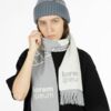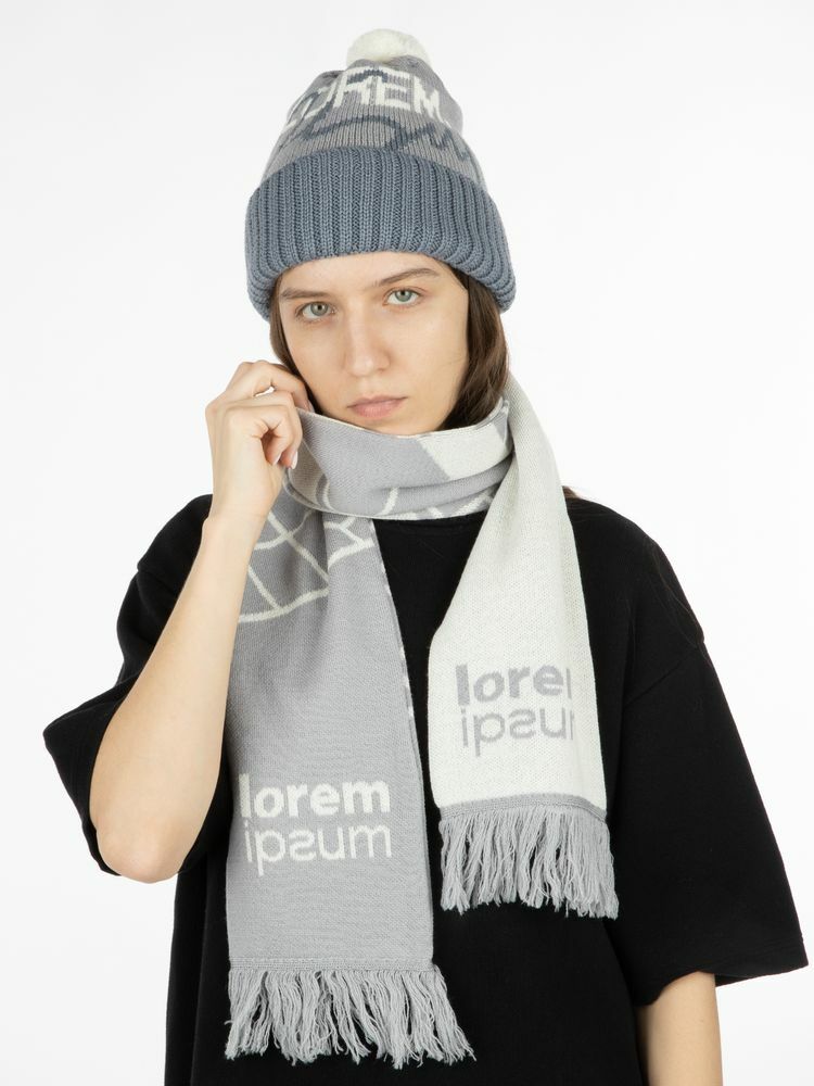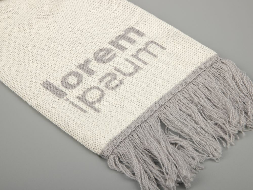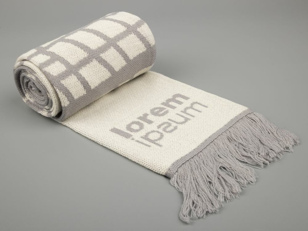 Шарф с вывязанным логотипом и индивидуальным рисунком в фирменной цветовой гамме.