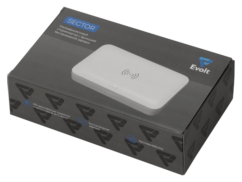 Универсальный стерилизатор эффективно уничтожает 99,9% вирусов и бактерий со всех поверхностей помещенных в него предметов. Подходит для стерилизации смартфонов, часов, наушников, ключей, масок, канцелярии и других небольших вещей. Стерилизатор «Sector» работает от USB, источником может быть ноутбук, ПК, сетевой адаптер или внешний аккумулятор (повербанк). Чтобы начать процесс дезинфекции достаточно положить предметы внутрь, закрыть крышку и нажать кнопку. Отсек для стерилизации 19,2 х 10 х 1,2 см. Стерилизация автоматически завершится через 5 минут. УФ-стерилизатор оснащен автоматической системой безопасности – УФ-лампы отключаются при открытии крышки. В центре крышки расположен модуль беспроводной зарядки. Чтобы активировать функцию ароматерапии - просто добавьте 2-3 капли эфирного масла в ячейку аромадиффузора. - Эффективность стерилизации 99,9%. - Стерилизация поверхностей предметов на 360°. - Удобство использования и безопасность. - Функция беспроводной зарядки. - Ароматерапия.