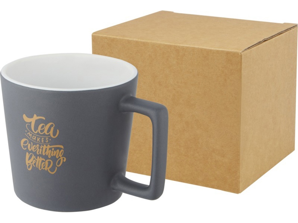 Керамическая кружка с современным дизайном и матовой отделкой. Объем 370 мл. Можно мыть в посудомоечной машине. Поставляется в упаковочной коробке из переработанного картона. Керамика.