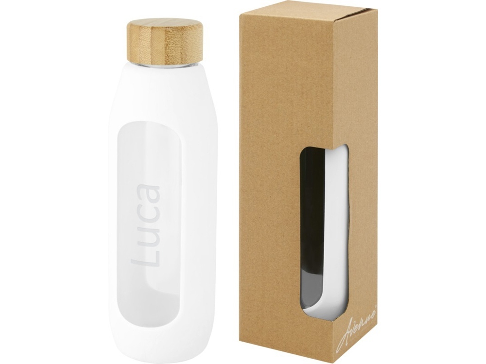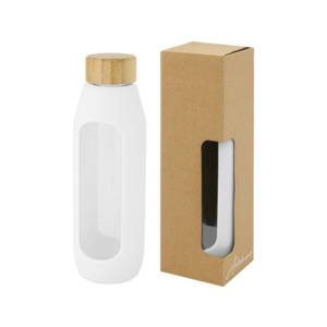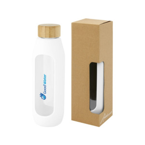 Экологичная многоразовая бутылка для воды, которая сохраняет воду чистой. Бутылка изготовлена из прочного боросиликатного стекла без содержания вредных химических веществ, благодаря чему сохраняется настоящий вкус чистой свежей воды. Имеет силиконовый держатель и герметичную крышку из органического бамбука. Протестировано и одобрено согласно немецкому законодательству о безопасности пищевых продуктов (LFGB), а также проверено на содержание фталатов согласно нормам REACH. Объем 600 мл. Сняв держатель и крышку, бутылку можно мыть в посудомоечной машине. В подарочной коробке из переработанного картона.