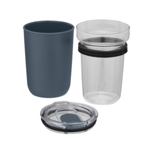 Bello, стеклянная кружка объемом 420 мл с внешней стенкой из переработанного пластика, синий в ассортименте цветов, материалов и моделей
