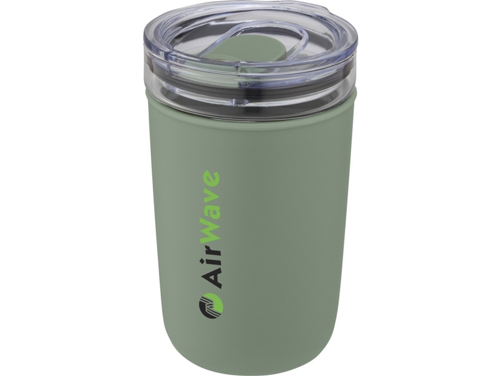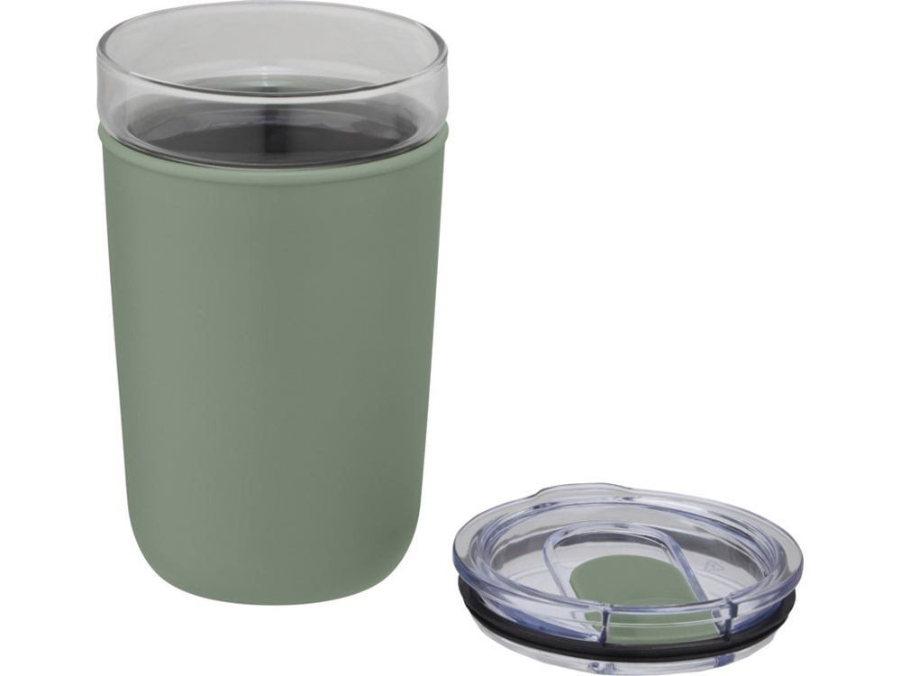 Bello, стеклянная кружка объемом 420 мл с внешней стенкой из переработанного пластика, зеленый яркий в ассортименте цветов, материалов и моделей