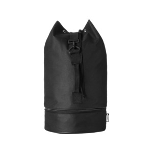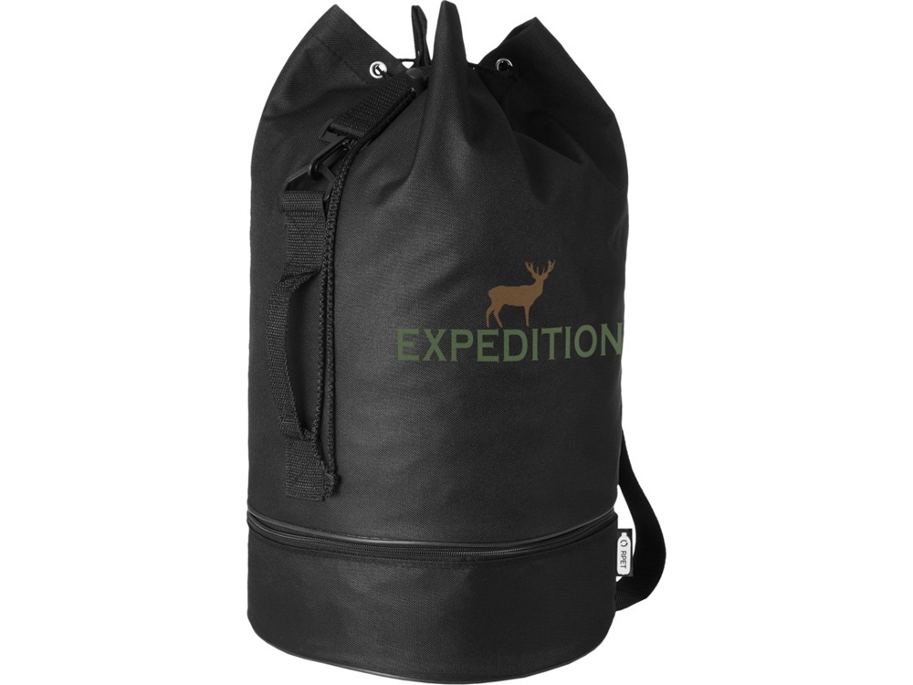 Водонепроницаемый спортивный вещмешок из переработанного РЕТ-пластика с вместительным 20 основным отделением объемом 20 литров, застежкой на шнурке, боковой ручкой и регулируемым плечевым ремнем. Также имеет отдельное нижнее отделение на молнии для небольших предметов.