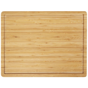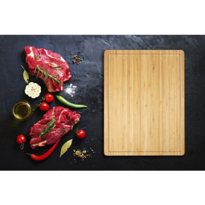 Разделочная доска для стейка из бамбука с канавкой по периметру, чтобы предотвратить разлив жидкости по столу. Разделочная доска из бамбука, который добывается и производится в соответствии со стандартами устойчивого развития.