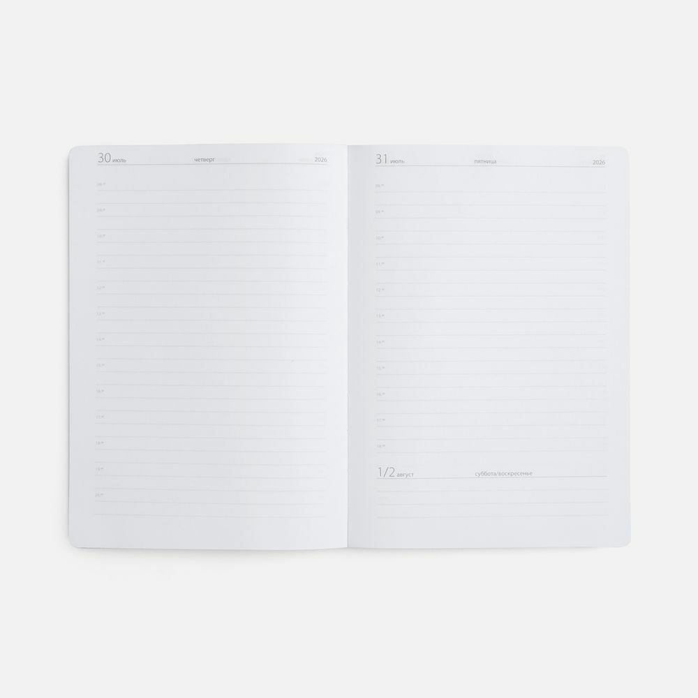 Ежедневник с твердой обложкой выполнен из материала Nice Touch, морская волна II, и дополнен резинкой шириной 1 см и ляссе в цвет обложки.
