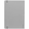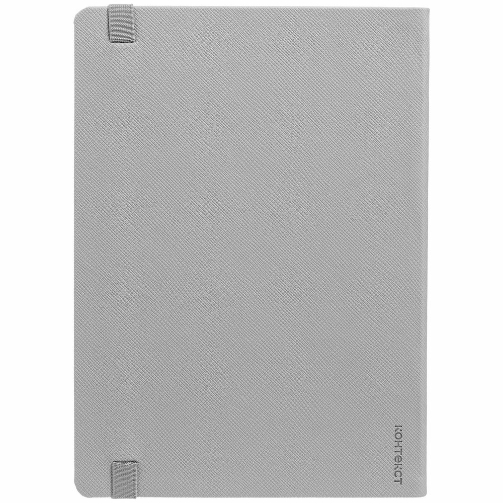 Ежедневник с полутвердой обложкой выполнен из материала Nice Touch, серый СС, и дополнен резинкой шириной 1 см с металлическим шильдом и ляссе серого цвета.