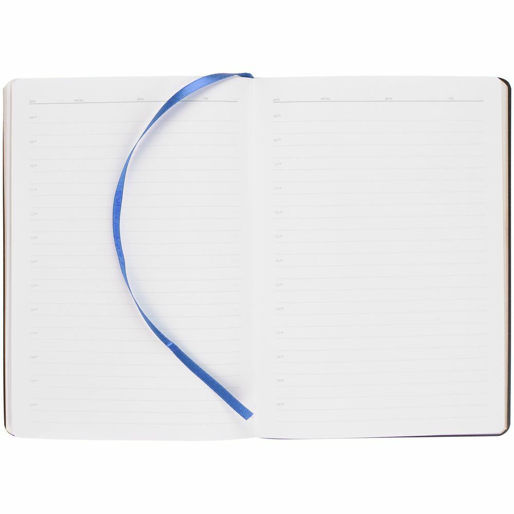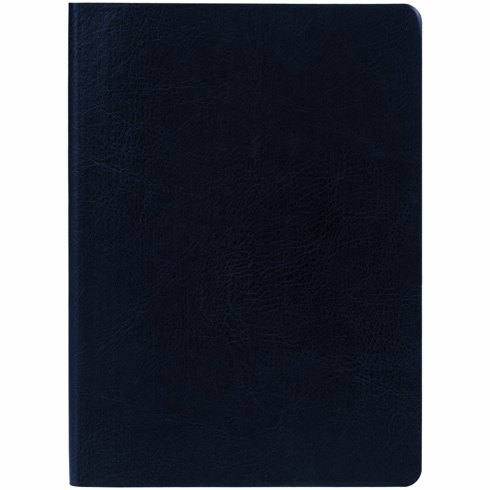 Ежедневник с гибкой обложкой, выполнен из материала Nebraska, темно-синий ХХ, дополнен ляссе темно-синего цвета.